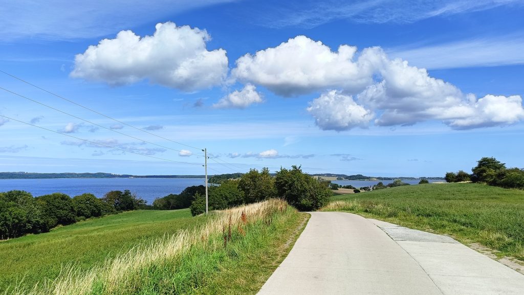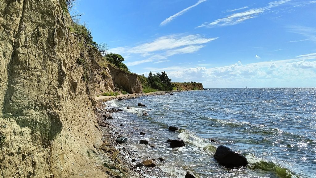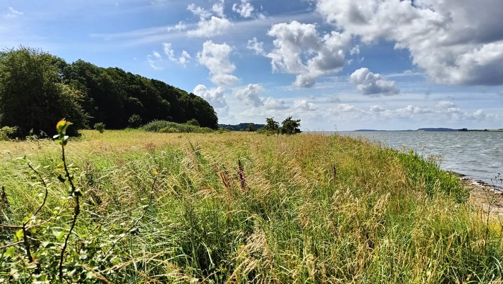 We willen een rondwandeling maken op het schiereiland Reddevitzer Höft, maar op een gegeven moment staat het water te hoog om door te wandelen. We wandelen terug en maken er een lijnwandeling van naar het uitzichtpunt Kasper Ort.